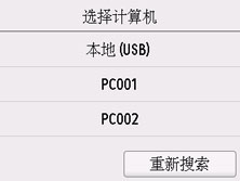 对于通过USB连接的计算机,选择本地(USB);对于通过网络连接的计算机,选择用于保存已扫描数据的计算机。