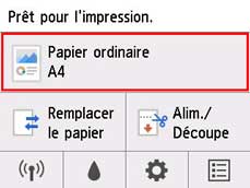 Touchez la zone d'affichage des paramètres du papier sur l'écran Accueil du panneau de contrôle.