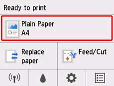 조작판의 홈 화면에서 용지 설정 표시 영역을 탭합니다.