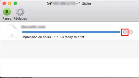 Cliquez sur × pour la tâche dont vous souhaitez annuler l'impression ou sélectionnez la tâche dont vous souhaitez annuler l'impression et cliquez sur Supprimer (Delete) pour supprimer la tâche.