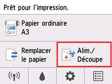 Touchez la zone d'affichage des paramètres du papier >Alimentation/découpe>Couper le papier>Oui