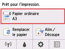 Touchez la zone d'affichage des paramètres du papier sur l'écran Accueil du panneau de contrôle.