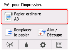 Touchez la zone d'affichage des paramètres de papier sur l'écran ACCUEIL.