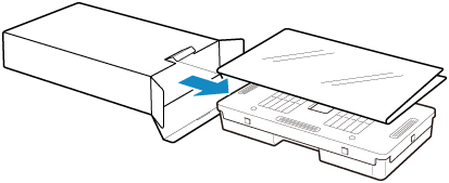Vérifiez les parties supérieure et inférieure de la cartouche d'entretien, rangez-la dans une boîte et stockez la boîte sur une surface plane.