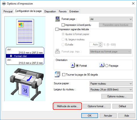 Sélectionnez Méthode de sortie.