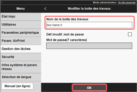 Pour faciliter l'identification, vous pouvez attribuer des noms aux boîtes des travaux personnelles.
