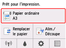 Sur l'écran ACCUEIL, touchez la zone Informations papier.