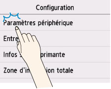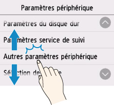 Faites défiler l'écran tactile et touchez le bouton ou l'élément affiché avec votre doigt pour sélectionner un menu.