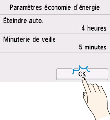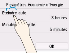 Exemple : opération pour modifier le paramètre de délai de mise hors tension automatique