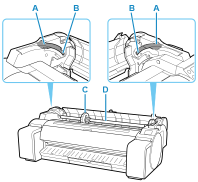 - (B) Slot supporto rotolo