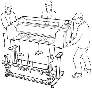 Lo spostamento della stampante richiede almeno tre persone. Prestare la massima attenzione per evitare strappi muscolari alla schiena o altre lesioni.