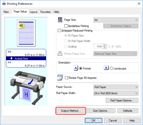 Selezionare il metodo di output in Metodo di output (Output Method).