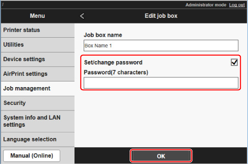 - Anche se è stata impostata una password, la stessa non sarà richiesta per accedere alle caselle lavoro personali nella modalità Amministratore di UI remota.