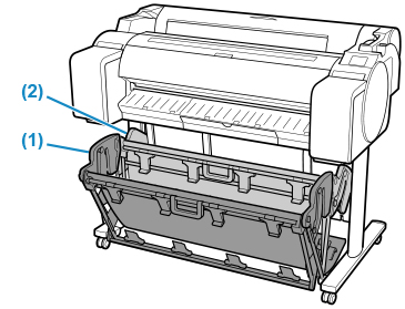 프린터를 이동할 때 지지대를 위치 (2)에 놓기 전에 항상 지지대를 확장 위치 A로 들어올리십시오. 그렇지 않으면 바스켓이 바닥에 닿아 더러워지거나 손상될 수 있습니다. ("확장 위치 A로 전환하기"를 참조하십시오.)