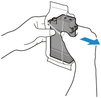 - 포장 주머니에서 잉크 탱크를 꺼낸 후 떨어뜨리지 않도록 하십시오. 그렇지 않으면 잉크가 새어 나와 주변이 더러워질 수 있습니다.