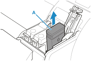 잉크 탱크의 손잡이(A)를 잡고 제거한 다음 OK를 탭합니다.