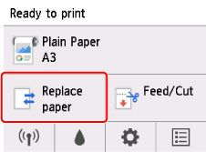 "롤 용지"가 표시된 경우 용지 선택(Select paper) 화면에서 커트지 로드(Load cut sheet)를 선택한 다음 커트지를 로드합니다.