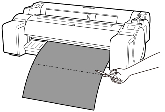 Corte cada página del rollo utilizando tijeras. Para una impresión continua (si va a cortar cada página más tarde), seleccione Corte automático (Automatic Cutting)> Sí (Yes) o seleccione Guía corte imp. (Print Cut Guideline).