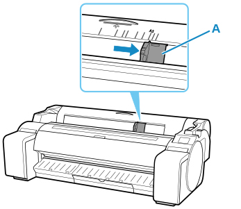 너비 가이드(A)를 밀어 로드할 용지 크기의 표시에 맞춥니다.