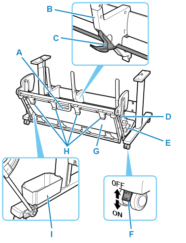 캐스터를 안전하게 잠글 수 있습니다. 프린터를 이동할 때 4개의 캐스터를 잠금 해제하십시오. 잠금형 캐스터가 잠긴 상태로 이동하면 바닥이 긁힐 수 있습니다.