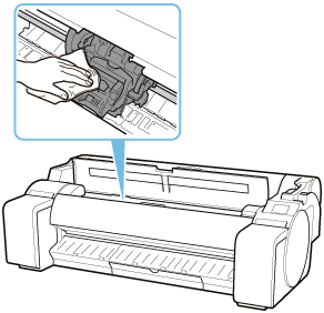프린트 헤드 잠금 레버의 가운데(C)를 잡고 뒤쪽으로 내립니다.