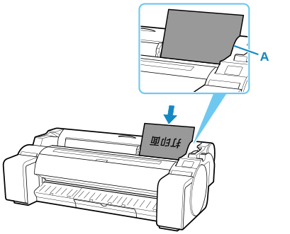 将单页纸的打印面向上装入进纸插槽,使右边缘与卷纸盖右侧的纸张对齐线(A)对齐。