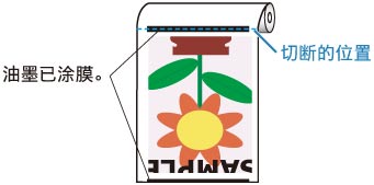 如果纸张在裁切时易产生纸屑(如背光胶片),从操作面板菜单将减少裁切屑设置为开,以便使用墨水覆盖已打印文档的前端和后端,减少裁切屑。 如此可以减少打印头发生的问题。 可以根据介质类型设置减少裁切屑。