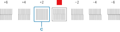 Untersuchen Sie das Testmuster, um die Anpassung vorzunehmen. Bestimmen Sie die geradeste Zusammenstellung von Linien.