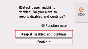 Impostare Rileva larghezza carta (Detect paper width) su Disattiva (Disable)