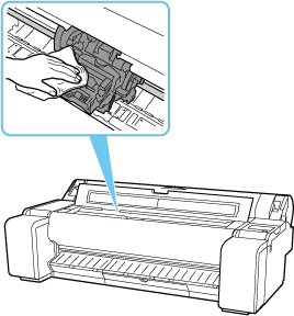 Se il coperchio di bloccaggio della testina di stampa e la leva di bloccaggio della testina di stampa sono sporchi, utilizzare un panno umido completamente strizzato per pulirli.