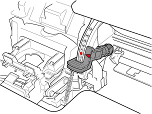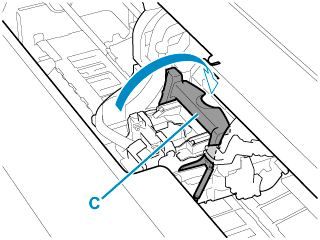 Tenendo la parte centrale (C) della leva di bloccaggio della testina di stampa, abbassarla verso il lato posteriore.