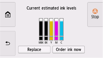 Na tela sensível ao toque, você pode verificar quanto de tinta sobrou no cartucho de tinta.