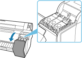 - A substituição do cartucho de tinta é possível mesmo durante a impressão, quando os trabalhos são cancelados ou quando o papel é avançado.
