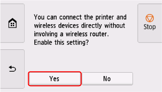 Убедитесь, что имя на сенсорном экране совпадает с именем вашего устройства, совместимого с Wi-Fi Direct, и выберите Да (Yes).