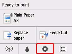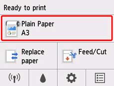조작판의 홈 화면에서 용지 설정 표시 영역을 탭합니다.