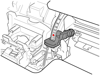 보호캡으로 보호되어 있던 부분이 캐리지에 닿지 않도록 조심하면서 프린트 헤드를 캐리지에 완전히 삽입합니다.