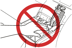 잉크 탱크를 손으로 밀지 마십시오. 잉크 탱크를 강제로 홀더에 밀어 넣으면 프린터가 손상될 수 있습니다.