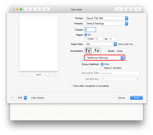 팝업 메뉴에서 추가 설정(Additional Settings)을 선택합니다.