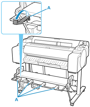 幅が24インチまたはA1(縦)のロール紙を使用する場合は、切り替えストッパー(A) を引き出す
