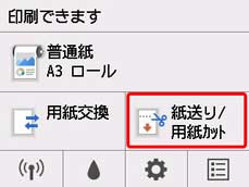 操作パネルのホーム画面で、[紙送り/用紙カット]をタップする