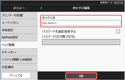 個人ボックスにパスワードが設定されている場合は、パスワードを入力してください。