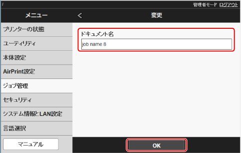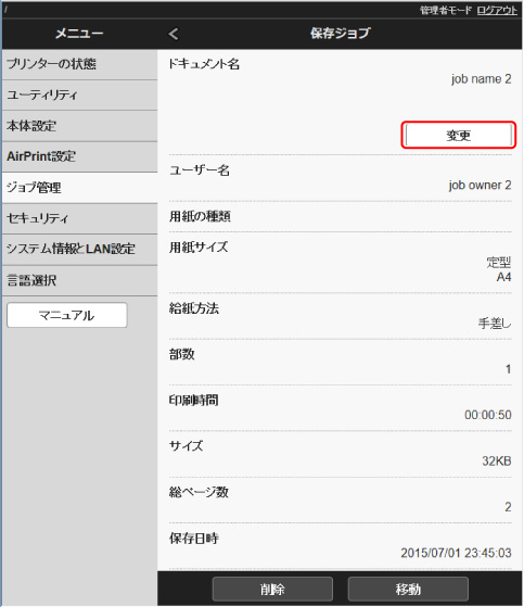 プリンターのハードディスクに保存されているジョブ(保存ジョブ)の名前を変更できます。