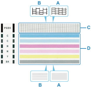 تحقق مما إذا كان هناك سطور مفقودة في النموذج C أو خطوط بيضاء أفقية في النموذج D.