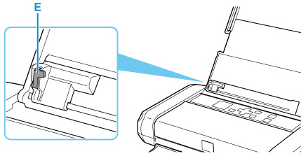 Menţineţi înălţimea teancului de plicuri sub urechea (E) a ghidajului pentru hârtie.