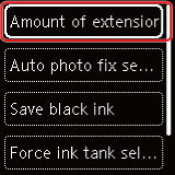 Această secţiune descrie procedura de modificare a setărilor din ecranul Setări dispozitiv (Device settings), urmând ca exemplu paşii pentru specificarea opţiunii Mărime extindere (Amount of extension).