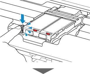 Če dvignete vzvod za zaklep tiskalne glave po namestitvi tiskalne glave, potisnite oba jezička iz leve proti desni, dokler se oba ne zaskočita na mestu.