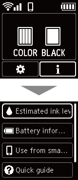 Izberite pri prikazu kratkih navodil za nalaganje papirja, odpravljanje napak ali druge informacije, pri preverjanju preostale ravni črnila ali pri prikazovanju informacij o tiskalniku.