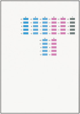 Zkontrolujte druhý vzorek. Ve sloupci O vyhledejte vzorek, ve kterém jsou pruhy nejméně vidět, vyberte číslo daného vzorku a stiskněte tlačítko OK.