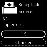 Une fois que vous avez fermé le couvercle de la fente d'alimentation, l'écran de confirmation des paramètres du papier pour le réceptacle arrière s'affiche sur l'écran LCD.