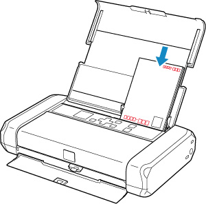 用紙ガイド(C)を左に動かし、用紙の印刷したい面を表にして、後トレイの右端(D)に合わせてセットする